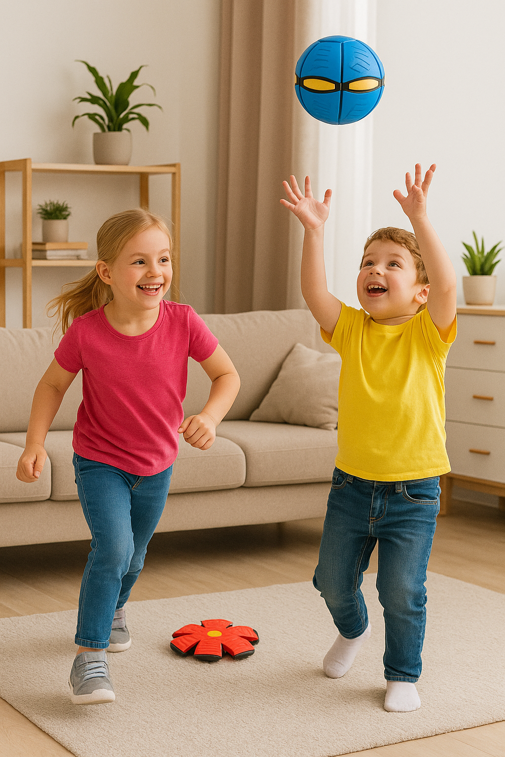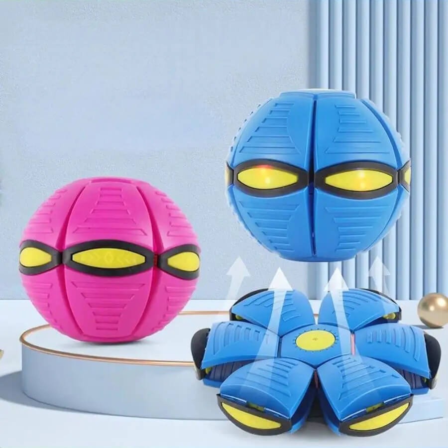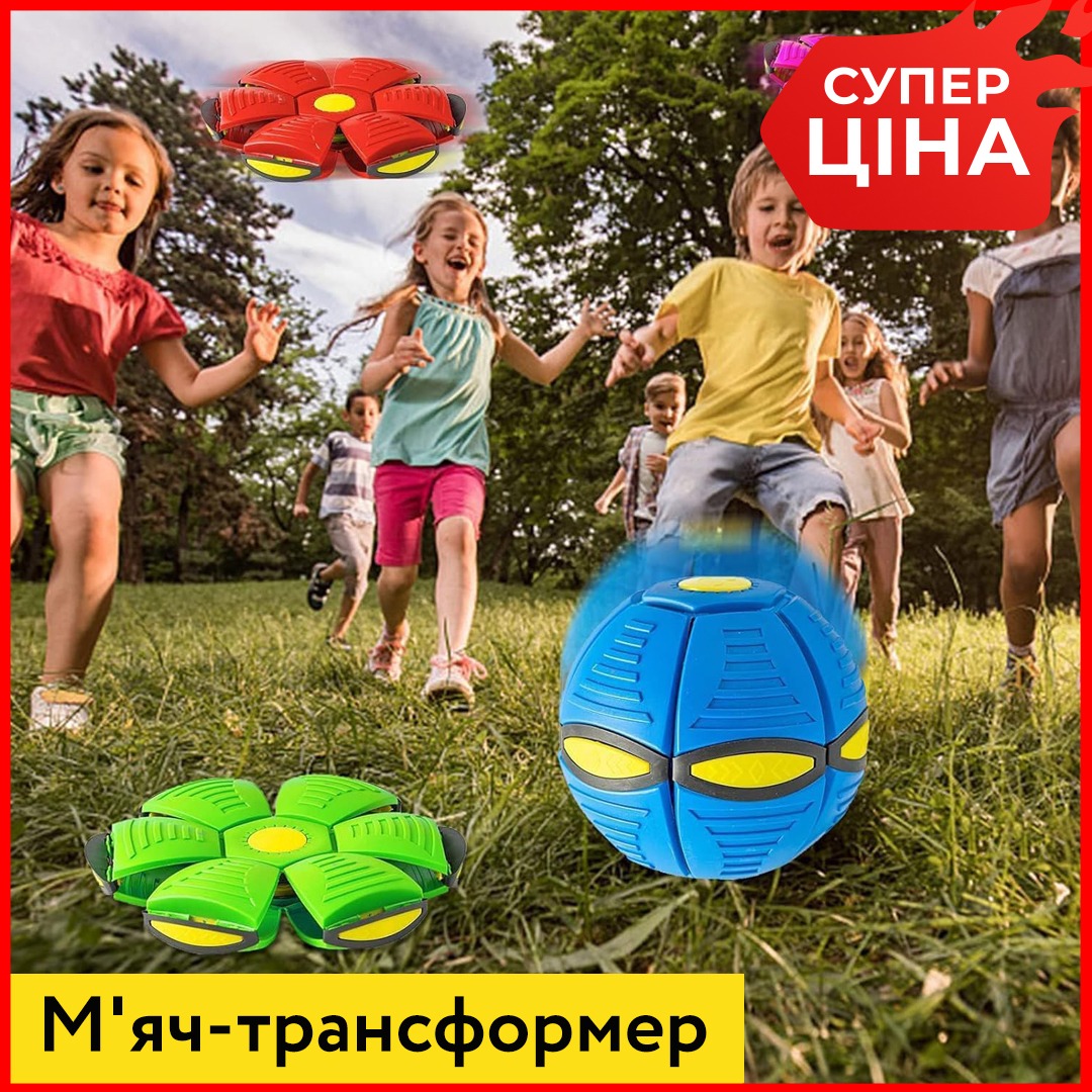 Стильний, компактний і незвичайний. Призначений для активного відпочинку, спорту, веселих ігор. Перетворюється з плоского літаючого диска на круглий м’яч. Натисніть на м’яч і він знову трансформується в диск, який легко поміщається в сумку або рюкзак. М’яч-тарілка може трансформуватися з диска в м’яч в польоті або при ударі об будь-яку поверхню.